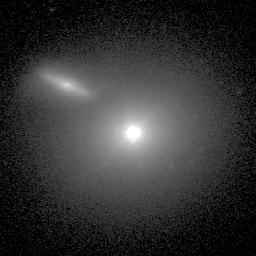 This is a BL Lacertae object and is one of the closest blazars to earth. Like all blazars, it is so luminous because a super-massive black hole at the center of a giant elliptical galaxy is blasting a superluminal relativistic jet nearly directly towards Earth. The rapid variability is a side-effect of us "looking down" the throat of this jet. While Mrk 421 fluctuates rapidly in brightness, it mostly stays brighter than magnitude 13.2, often getting up around magnitude 12.8. Mrk 421 is also probably the easiest of the four quasars to find, because it is adjacent to a 6th magnitude star. (Photo by Aimo Sillanpaa with the Nordic Optical Telescope.)